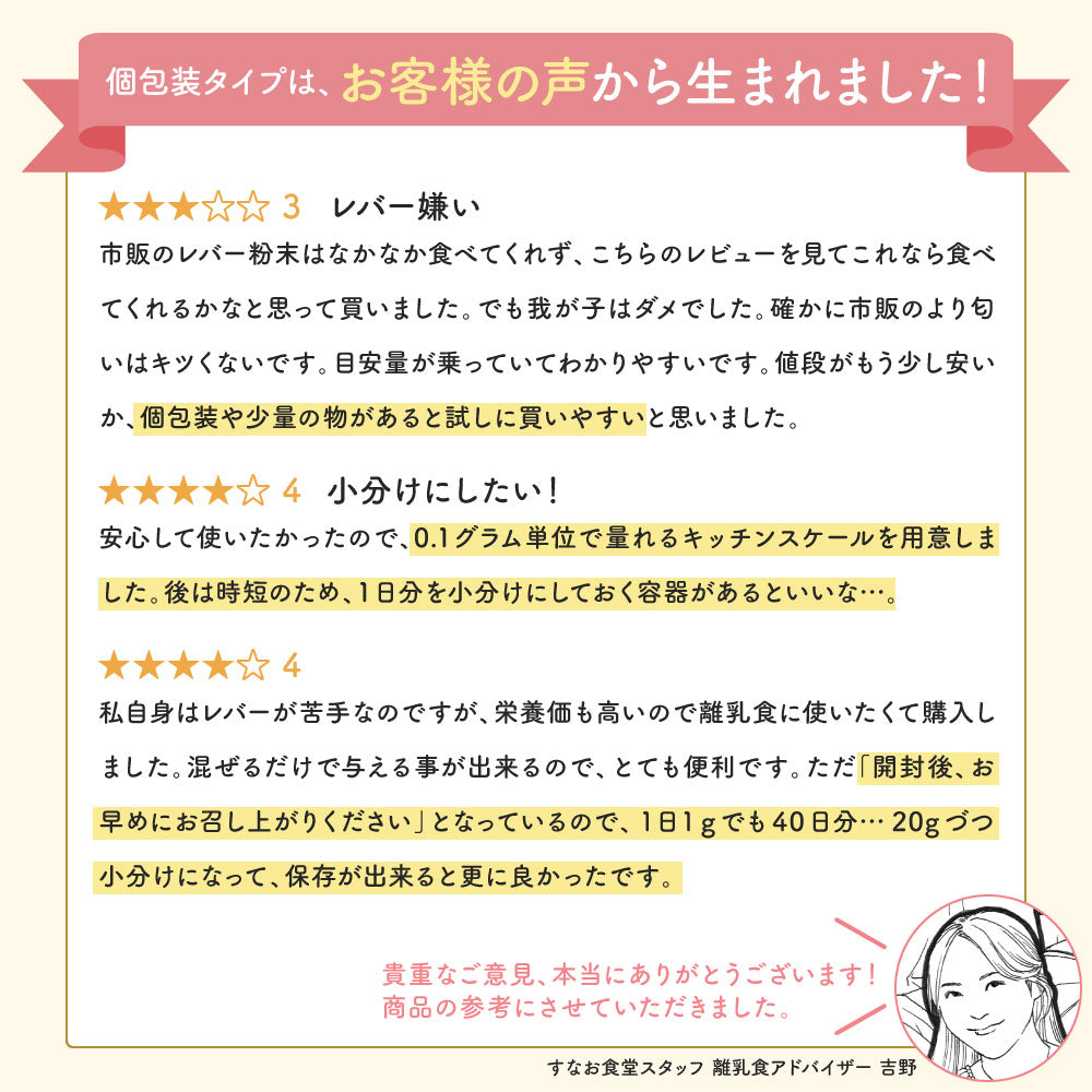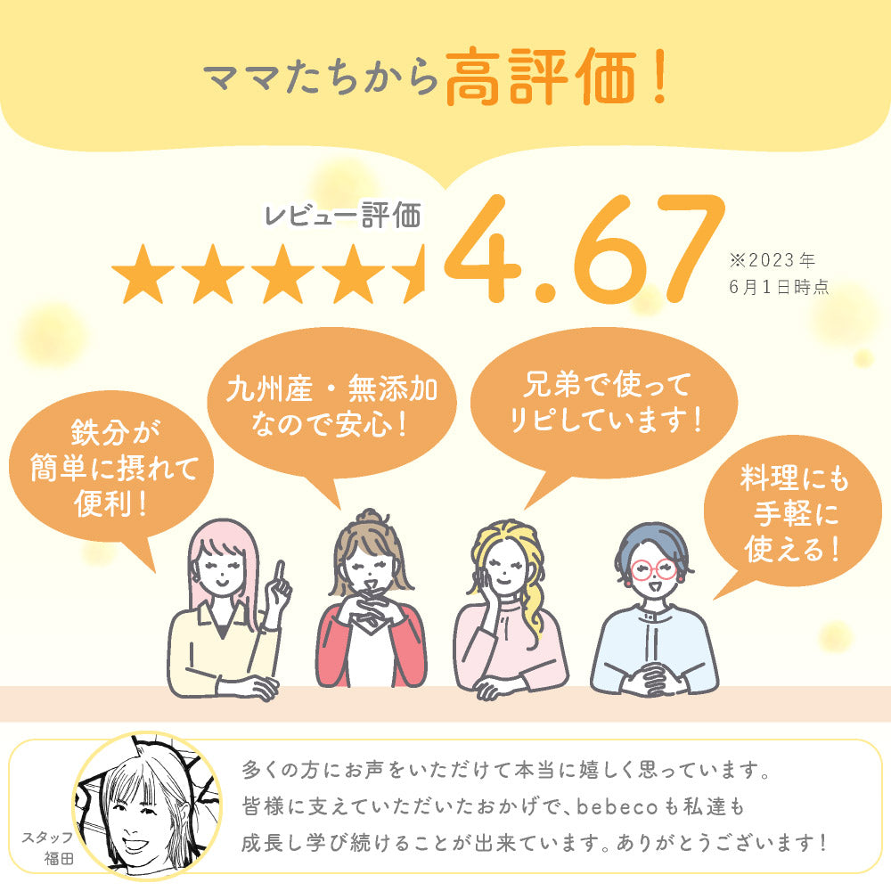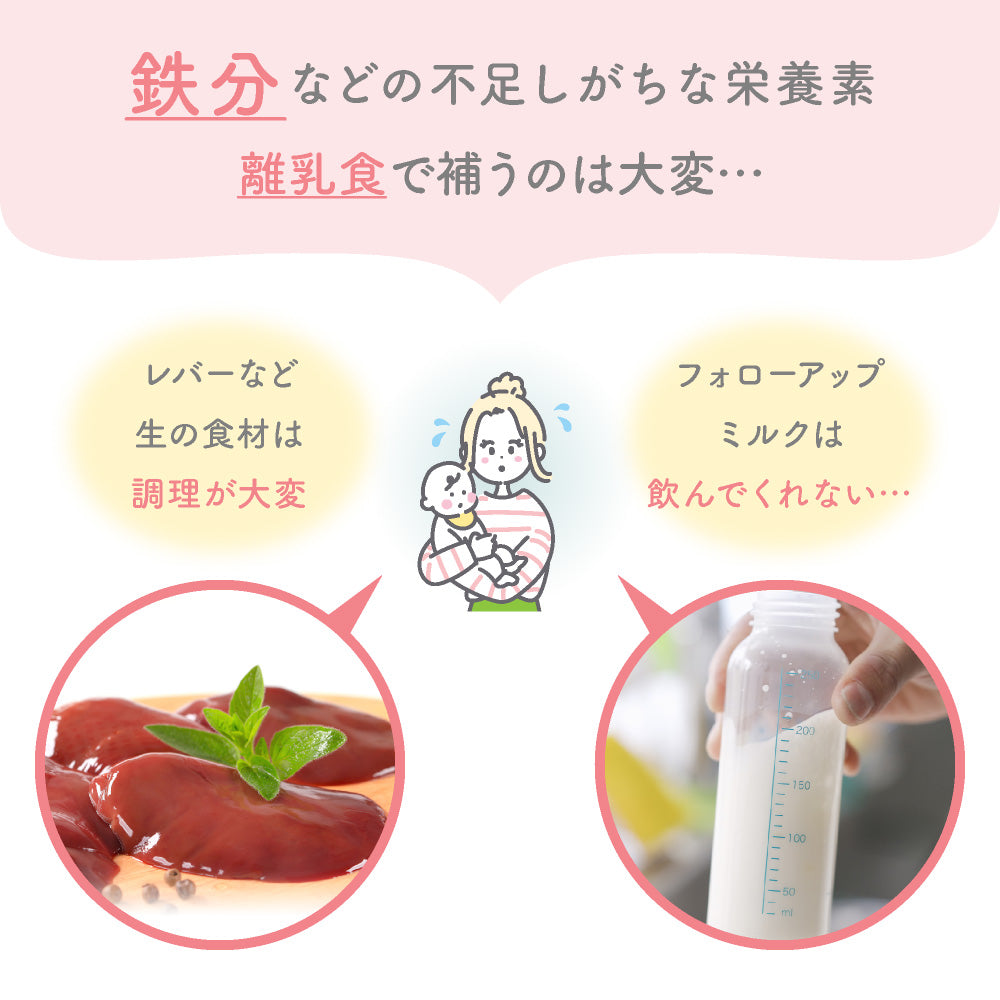 離乳食だけではなく、鉄分不足のプレママにも使っていただける食品です。