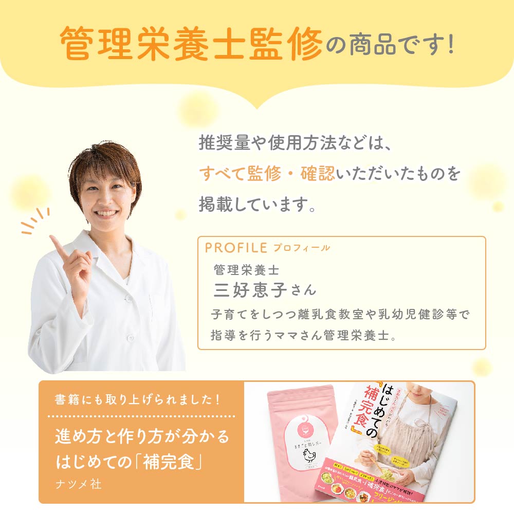 まるごと鶏レバーの使用目安や使用方法などは、すべて管理栄養士に監修・確認していただいています。