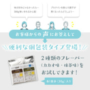 | 水やアーモンドミルク約200mlに、30g(1袋)程度を目安によく溶かしてからお飲みください。 ホットでお飲みの場合は、やけどの恐れがありますのでプロテインシェイカーのご使用はお控えください。 カップに入れスプーンでかき混ぜながらお飲みください。 (デキストリンなどを使用しておりませんので、粉が容器の底に残る場合がございます) |